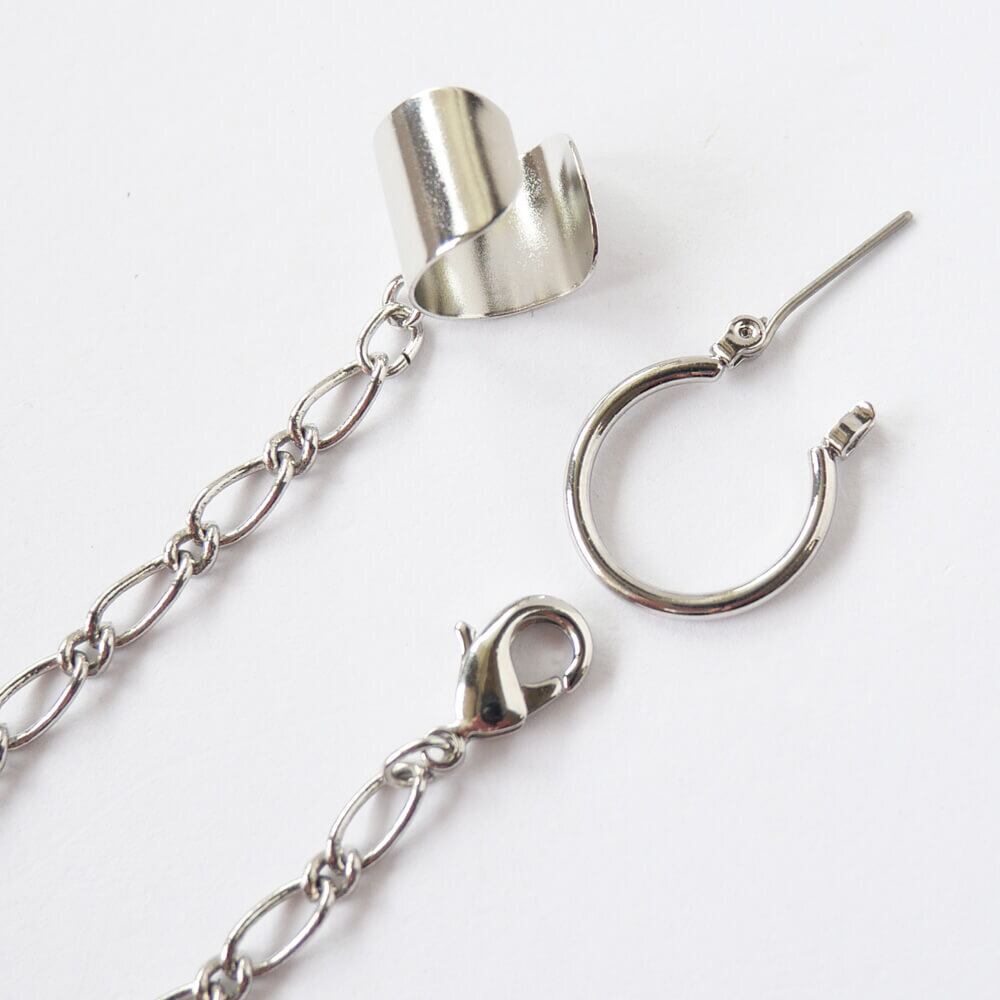 イヤーカフ チェーン リング ピアス シルバー ゴシック パンク 片耳用 メンズ レディース ロック アクセサリー