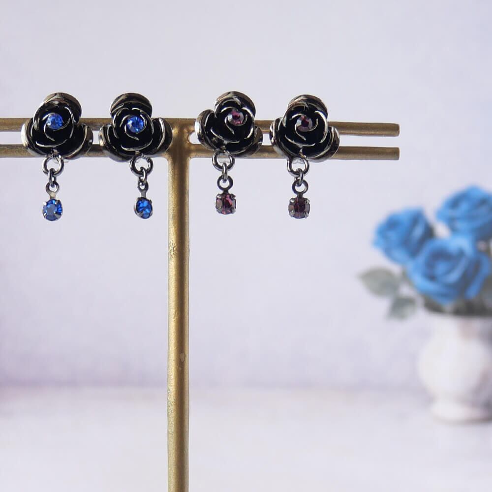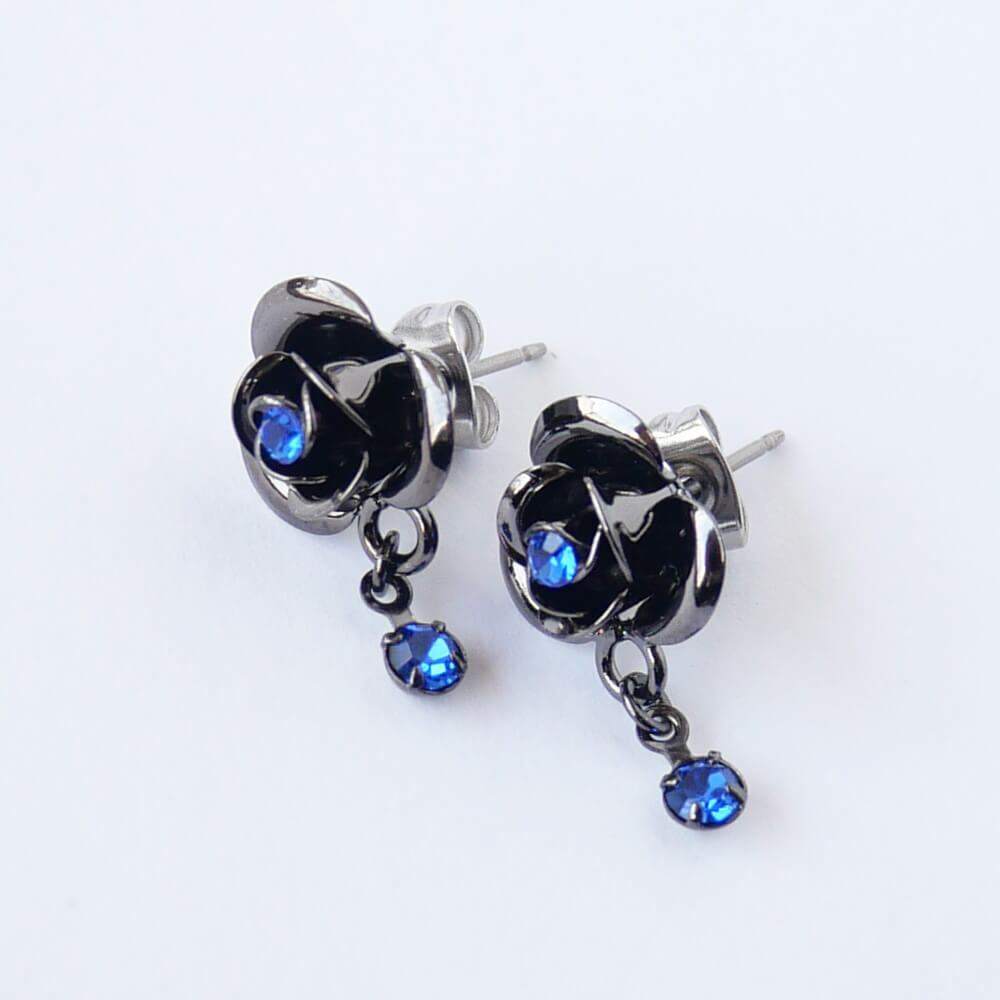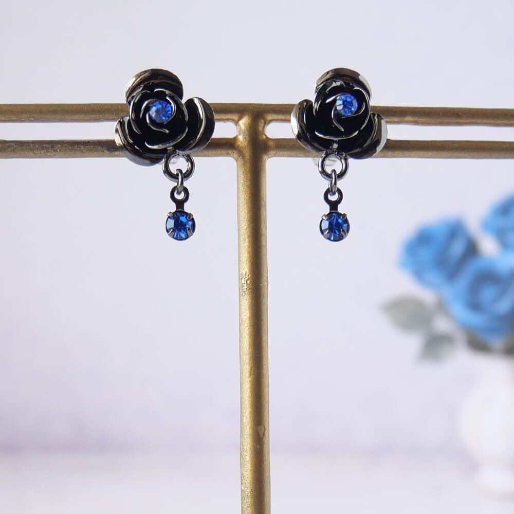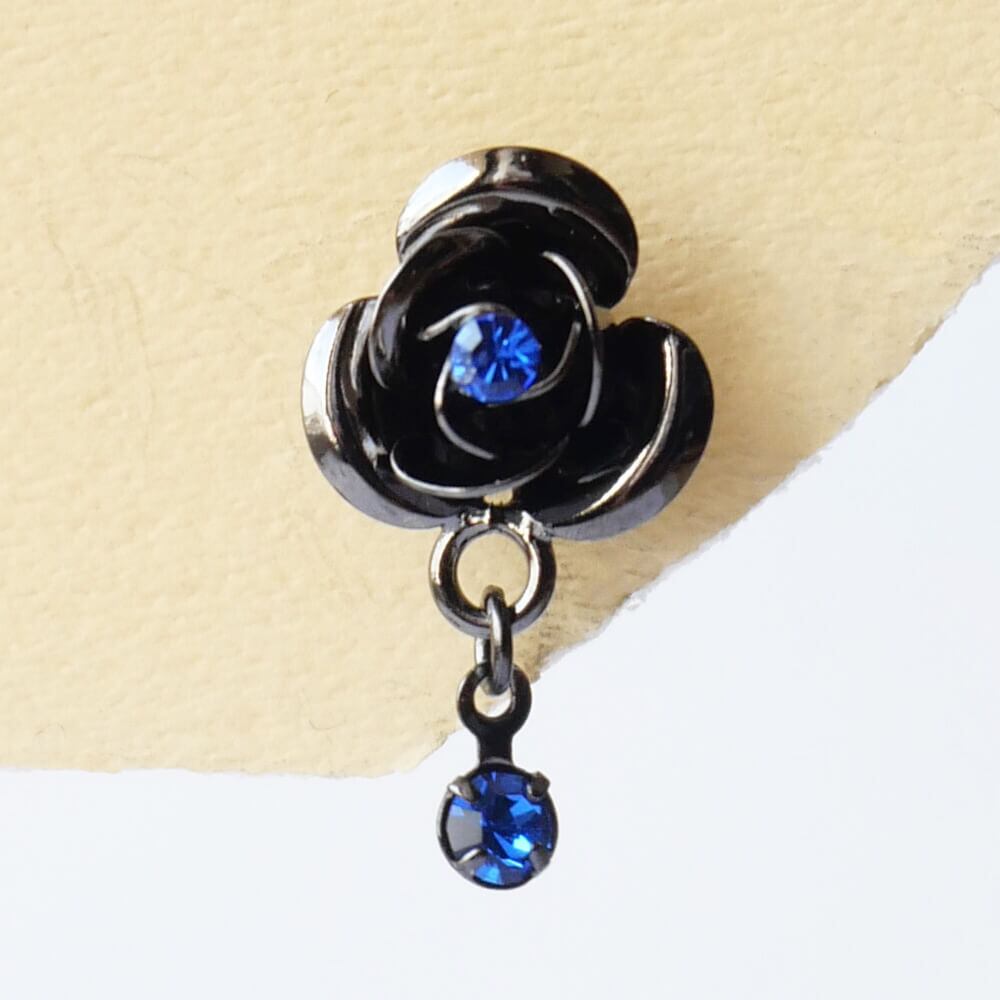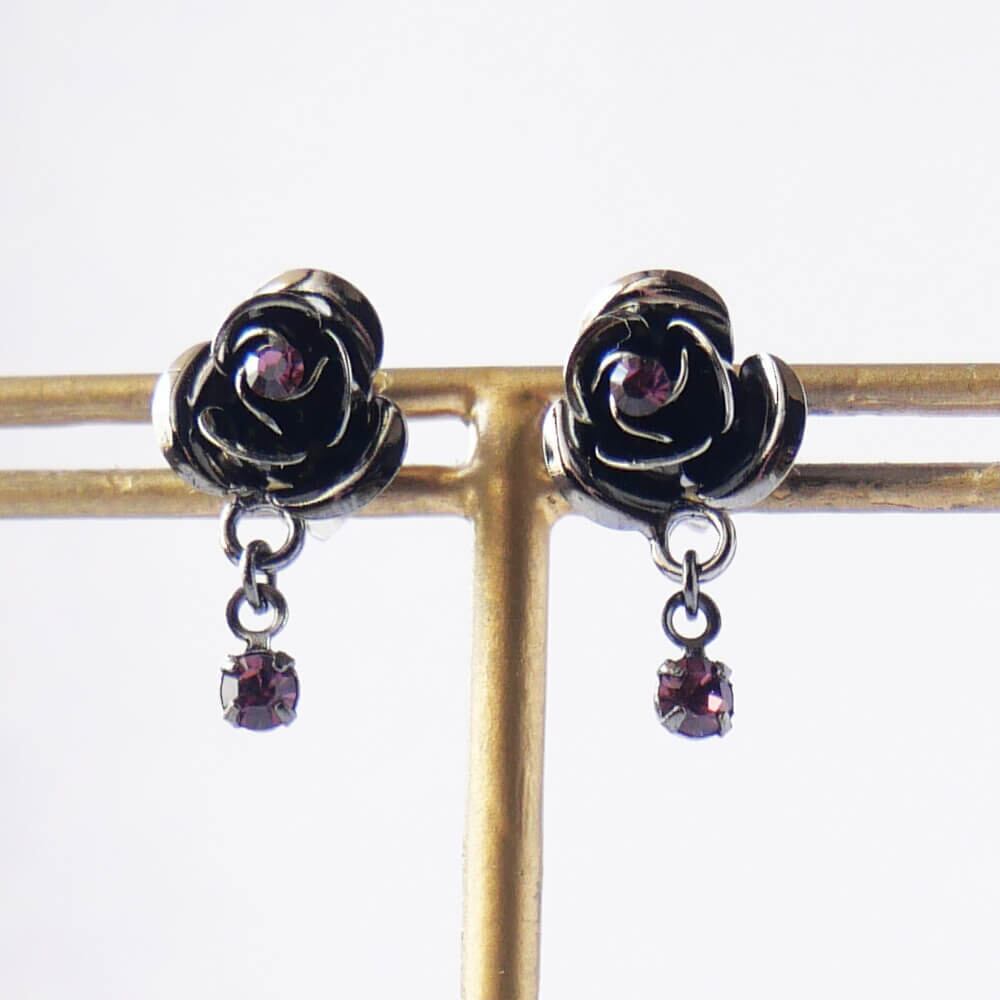 薔薇 ローズ ワンストーン ピアス ガンメタ ミニ 揺れる ゴシック ゴスロリ 日本製