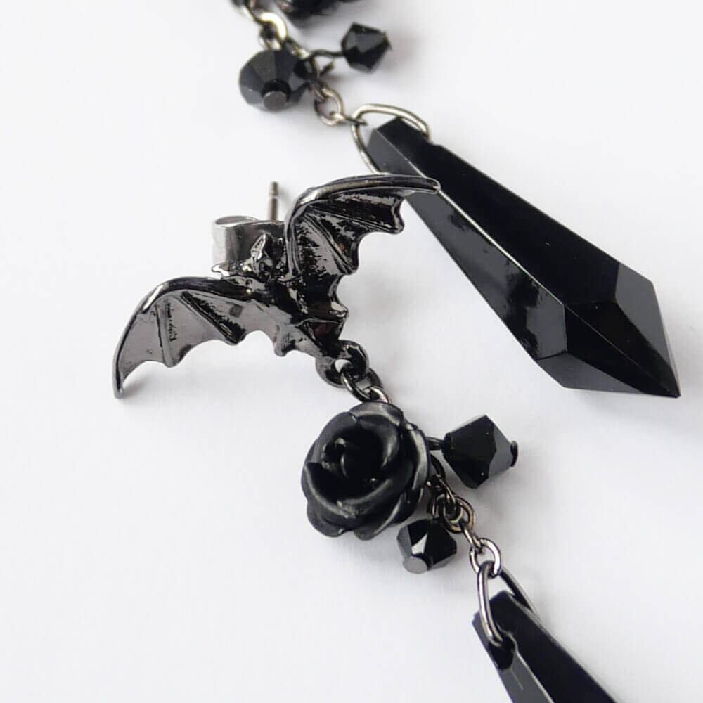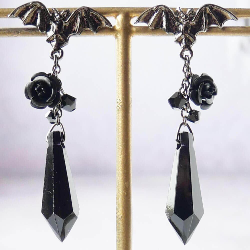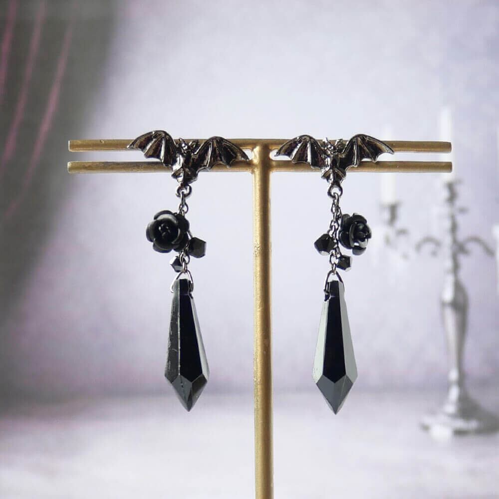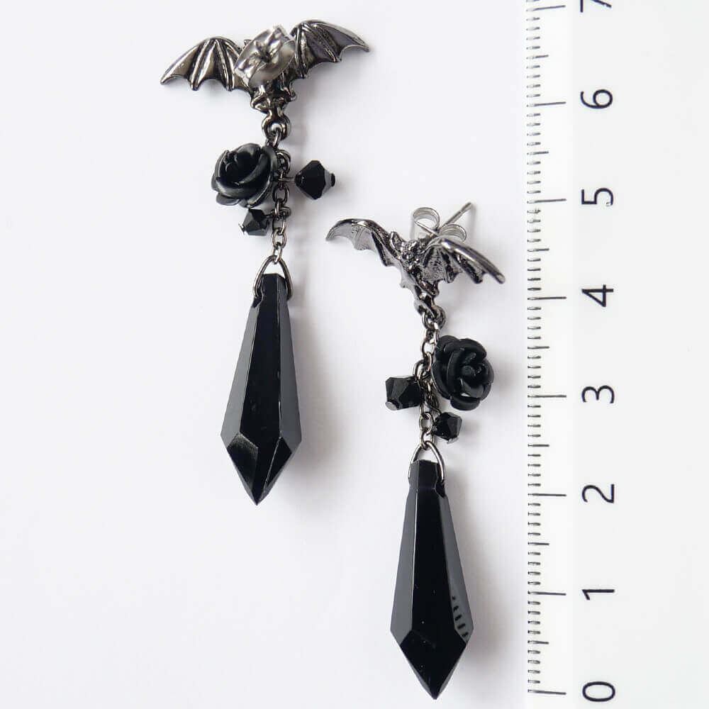 ゴスロリ ピアス コウモリ 蝙蝠 ブラック ローズ 黒薔薇 ガンメタ ゴシック ロリータ ゴスパン ダーク